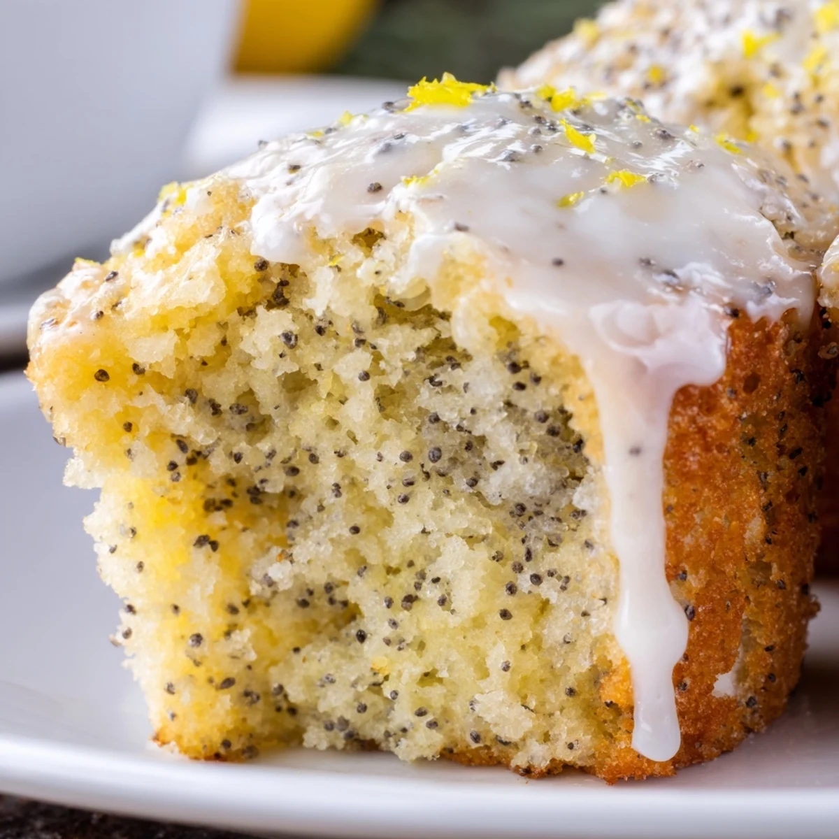 Tender, zesty muffins with fresh lemon flavor and crunchy poppy seeds, topped with sweet glaze.