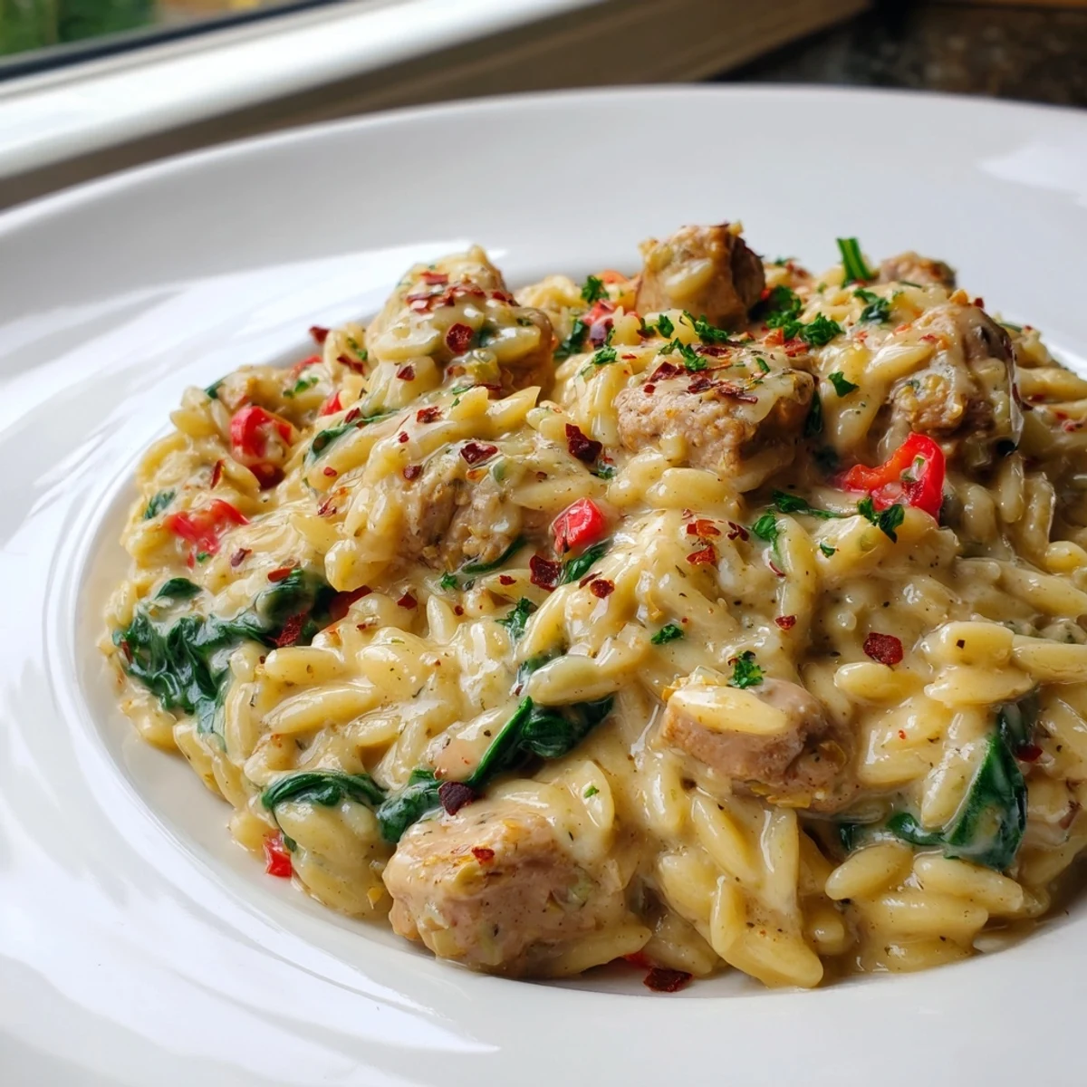 This keeps well in the refrigerator for up to 3 days, though the orzo will drink up most of the sauce. When reheating, add a splash of broth or cream to bring it back to life. The microwave works, but a gentle warm-up in a skillet yields the best texture.
