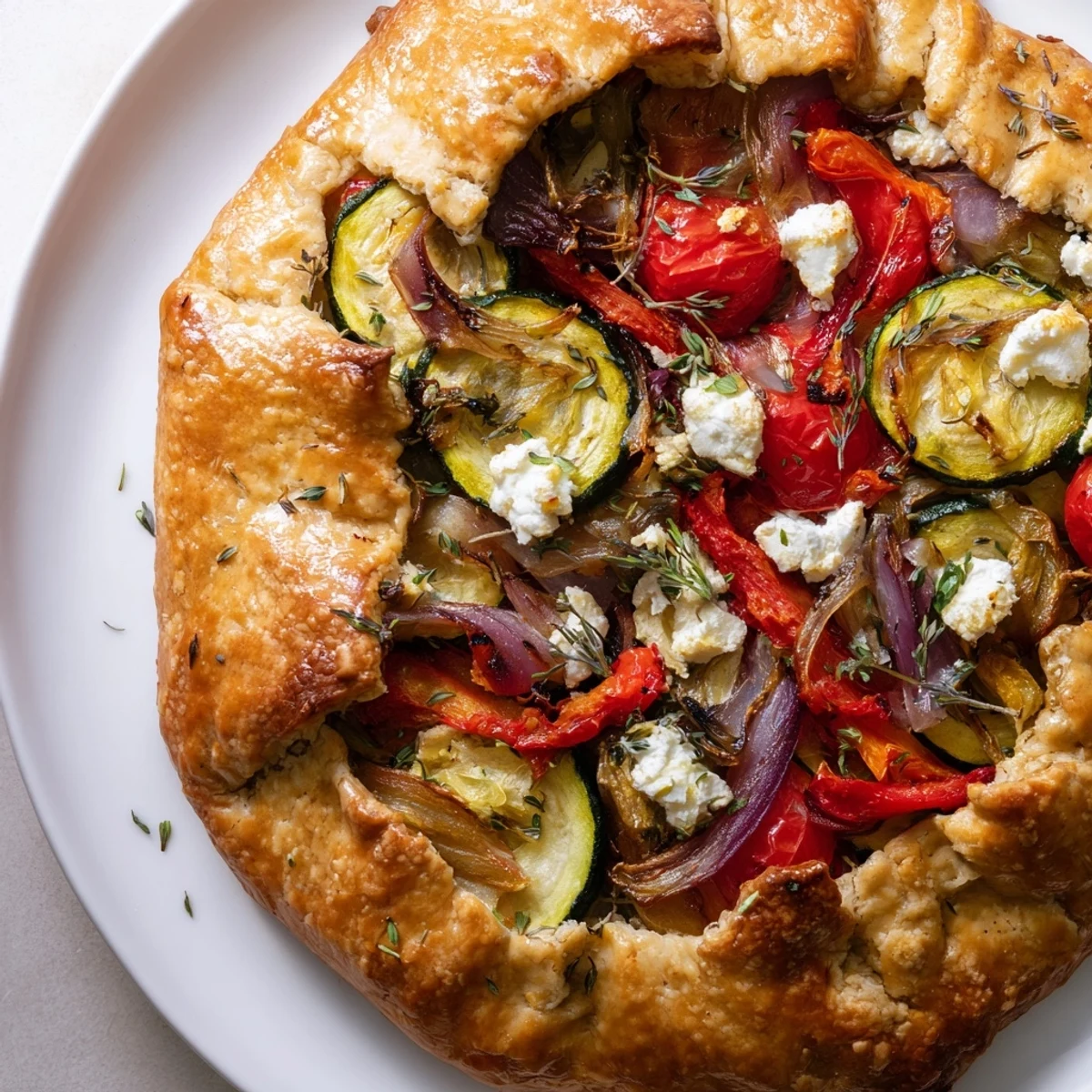 This savory galette combines a flaky, buttery crust with a medley of roasted zucchini, bell pepper, red onion, and cherry tomatoes. Enhanced by creamy goat cheese and fresh thyme, it offers a rustic, flavorful dish suitable as a vegetarian centerpiece or side. The handmade crust is chilled, rolled, and folded over the vibrant filling, then baked until golden brown. Serve warm or at room temperature, optionally paired with crisp white wine. Variations include substituting cheeses or adding mushrooms and spinach.